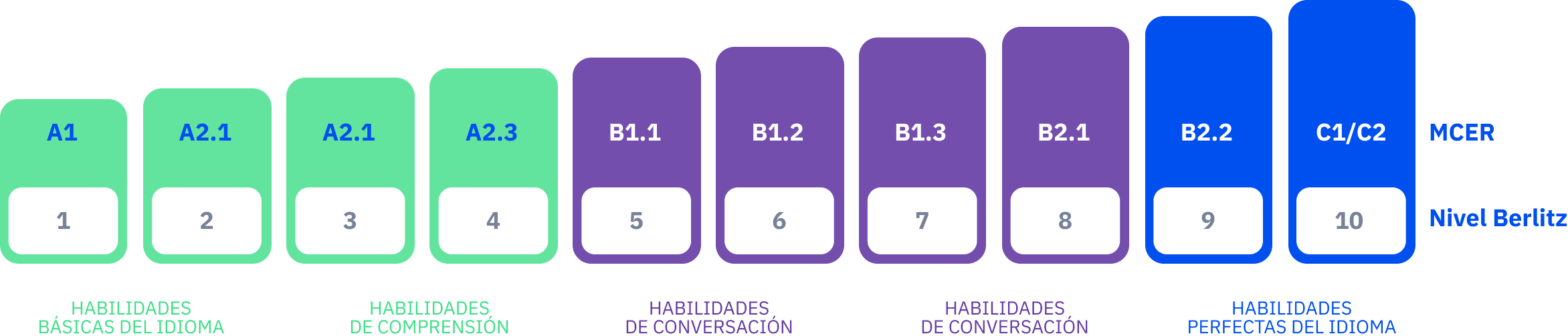 Porque estamos 100% comprometidos con tu aprendizaje, nuestro plan personalizado de estudio, basado en la eficaz metodología Berlitz, te asegura un progreso rápido y notable en cada etapa de tu recorrido.